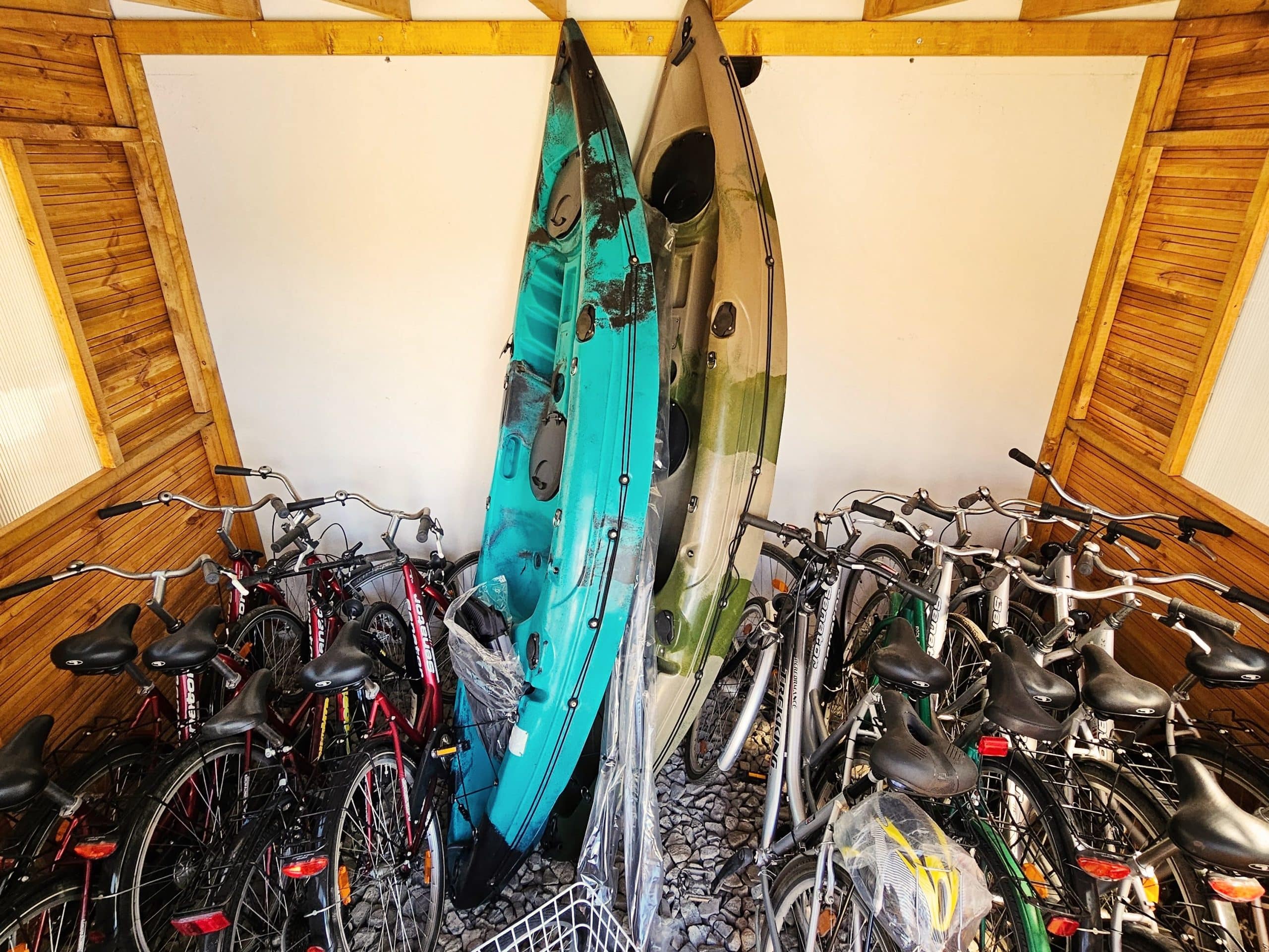 - Wypożyczalnia dodatkowego sprzętu turystycznego (rowery elektryczne, rowery tradycyjne, łodzie wędkarskie i wiele innych) – według cennika